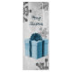 Deu uma boa garrafa de vinho nesta época de Natal com um saco de presentes de Natal Azul. O design de presente apresenta um presente de Natal embrulhado e vibrante, adornado com cinzas e flocos de neve brancos contra um fundo de nuvens de cinzas. Itens adicionais de presentes e feriados disponíveis com este design também.