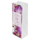 As orquídeas fornecem um pano de fundo decorativo para esta mala brilhante de presentes de vinho de casamento. Excelente para eventos climáticos quentes, casamentos, aniversários, ao ar livre, dentro. Utilização para complementar temas de eventos de casamento florais, incluindo temas tropicais. Adicione facilmente seus detalhes. Use a modelo para criar seu próprio saco de presentes de vinho personalizado.