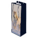 Uma bolsa de presente de vinho de Natal com uma fotografia de um lindo cavalo branco. Atravessando um campo coberto de neve. Majestosa e bonita.