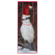 Para amantes de pássaros e da natureza! Saco de presente de vinho com caimento vermelho e mostra a imagem esbranquiçada de um pássaro Whiskey Jack vestindo um chapéu de Papai Noel vermelho alto. Também conhecido como Jay Cinza e Canada Jay. Tamanho ideal para dar garrafas de vinho e outros artigos altos. Selecione o estilo do seu saco-presente.