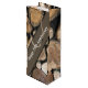Esta bolsa de presente de vinho é perfeita para um Aniversário de Casamento de 5. Ele apresenta uma pilha de logs como um fundo, acompanhando o tema da madeira. Os nomes e saudações podem ser alterados para torná-los verdadeiramente pessoais. Excelente para preencher com presentes para este importante aniversário.