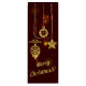 Belo cartões de natal de Natal com Enfeites de natal brilhantes e luzes sobre fundo vermelho escuro.