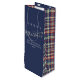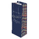 Sacola Para Vinho Feliz Natal - Script de Caligrafia Marinho Xadrez