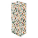 Saco de presente de Natal com pinguins brancos e pinheiros bonitos em vermelho-tijolo, ouro e turquesa.