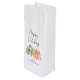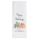 Saco simples e elegante de presente de vinho de Natal com uma bela aquarela de pinheiros verdes, vermelhos, dourados e terracotta, "Felizes Feriados" num roteiro de na moda e a sua mensagem e nome na tipografia moderna.