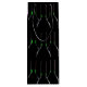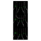 Uma silhueta de três garrafas de vinho preto com rótulos verdes que brilham no escuro.