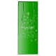 Este design apresenta uma árvore de Natal brilhante, floco de neve no chão e neve borbulhada sobre fundo verde