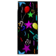 Adicione seu nome a esta design de festa com balões, estrelas e confete sobre fundo preto.