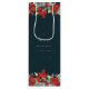 Saco de presente de vinho elegante, verde-escuro, personalizado para o Natal/Natal, com uma cobertura de bagas vermelhas pintadas à mão e eucalipto. Todo o texto é totalmente editável para que você possa facilmente alterar o estilo/cor/tamanho da fonte e excluir ou mover o texto. Bolsas de tamanho diferente e itens de coordenação disponíveis na minha loja.