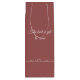 Elevate your romantic gift with this elegant wine gift bag from our 'The Soundtrack of Us' collection. Featuring the heartfelt quote 'Every love story deserves a toast' on the front and 'The best is yet to come' on the back, it’s designed for those special anniversary or Valentine’s Day moments. The deep wine-red color and minimalist heartbeat accent make it a sophisticated choice for pairing with our custom music QR code wine labels.