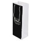 Adicione um toque mágico ao seu casamento de Halloween com esta bolsa de presente de garrafa de vinho "Beba, Bruxas". Com um fundo preto elegante e texto branco, além de espaço para uma linha de texto personalizável, esta bolsa é perfeita para presentear vinho, espumante ou bebidas espirituosas assustadoras para sua coven de damas de honra. Combina perfeitamente com rótulos de vinho, copos de shot, adesivos e mais do conjunto Nossa Bruxa Está Casando.