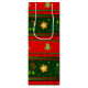 Esta bolsa de presentes de vinho é uma opção festiva para adicionar moda e talento a qualquer reunião de férias. Com grandes listras horizontais vermelhas e verdes, embelezadas com árvores de Natal verdes, flores vermelhas com folhas verdes e estrelas de ouro bonitinhas, é a maneira perfeita de oferecer uma garrafa de vinho ou de espíritos.