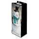 Saco de presente de vinho com um desenho bonito com um boneco de neve vestindo um legal chapéu e cachecol. O fundo tem uma linha de pinheiros brancos cobertos de neve.