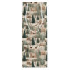 A pleasant winter scene with deer roaming amongst a landscape of village houses and robust pine trees.