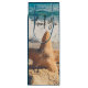 Um saco de presentes com uma foto cênica. Um grande peixe-estrela colocado em pé numa praia arenosa. Um belo mar azul com ondas de surf branco no fundo.