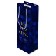 Saco de presente de vinho elegante com as palavras "Pop Fizz Clink" em folha de ouro falso contra um padrão de luz azul-safira. Perfeito para festas de noivado, casamentos, aniversários ou vários outros eventos.