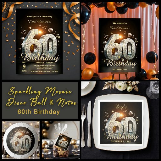 Sparkling Mosaic Disco Ball & Notes 60th BirthdayCriado por Kristina Lj Petrovska