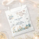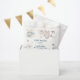 Sweet watercolor favor bags featuring tiny knitted clothes hanging on a snowy clothesline! Soft blue foliage, delicate snowflakes and gold accents make these the perfect take-home treat bags for your Winter Little Snowflake baby shower. Fill with candies, cookies or small gifts – guests will adore them! Matches our invitations, plates & favor boxes perfectly.