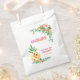 Obrigado seus hóspedes com guloseimas nessas bolsas personalizadas feitas com flores tropicais brilhantes e divertidas e abacaxi e MAHALO (obrigado) e tipografia BIRTHDAY em rosa e laranja perfeitas para qualquer festa de aniversário tropical ou havaiana com tema de luau. Entre em contato com o designer por meio do Zazzle Chat ou makeitaboutyoustore@gmail.com se você quiser que este design seja modificado, em outro produto ou quiser coordenar suprimentos e decorações de festas para completar seu tema.