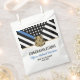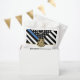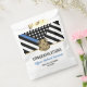 Este design apresenta uma bandeira da polícia com listras pretas e brancas, e uma fina faixa azul de linha também. Um excelente de dizer parabéns ao novo formando da academia de polícia. Personalize com o nome do polícia graduado em ouro. Celebre este marco em estilo!