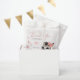 Cute girl baby shower favor bag featuring adorable little female zebra wearing a cute pink bow with some love hearts sitting on the clouds