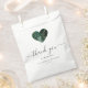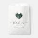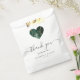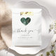 Estas elegantes e modernas bolsas de casamento exibem uma forma cardíaca cheia de uma esmeralda de aquarela verde e uma falsa design de ouro brilhante. As palavras "obrigado você" aparecem no elegante roteiro de cinza de carvão com baloiços no começo e no fim. Personalize a mensagem e adicione os nomes do casal e a data do casamento.