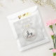 Favorecer bolsas com um design de feriado mágico. Apresentando uma bola prateada de Natal com decorações em flocos de neve e terminando com um bonito arco prateado. O fundo é uma ilustração de luzes de prata com estrelas elegantes espalhadas por toda parte. Texto diz: Joy to the world.