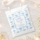 Algo Azul Antes de Eu Fazer Chá de panela Favorece Bolsas em Azul + Branco. Escrito elegante de estilo caligrafia manual com um padrão de arco giro. Personalize o modelo com o título e a data do evento. © Kimbellish, LLC