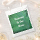 Receba seus convidados com estas sacolas de lembrancinhas personalizadas com uma foto de uma folha de palmeira verde. Todo o texto pode ser facilmente personalizado para atender às suas necessidades.