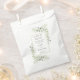Com delicadas folhas de eucalipto verde, essas bolsas de lembrança de casamento botânico chic podem ser personalizadas com sua mensagem especial e detalhes da celebração do casamento. Projetado por Thisisnotme©