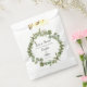 Apresentando folhas verdes de eucalipto, essas bolsas botânicas para o casamento podem ser personalizadas com sua mensagem especial e detalhes da celebração do casamento. Projetado por Thisnotme©
