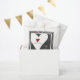 O design do produto apresenta duas pombas brancas que se revoltam e olham para cima em direção a um coração. Pombas brancas são símbolos de amor, sorte, paz e prosperidade. Esta simples ilustração de aves faz bolsas modernas a favor com texto personalizado para casamento rústico, aniversário, Dia do Namorados, ou quaisquer outras ocasiões românticas!