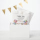 A ilustração original do desenho de Destei de um adorável cão da raça Terrier, revestido com molho. O cão é colocado num ambiente de aniversário colorido com balões de aniversário de cor pastel, presentes e uma faixa de bunting. As cores pastel incluem rosa, verde, azul, vermelho, laranja e roxo. O cachorro está parado sobre uma textura amarela de chão de madeira e o fundo tem um padrão de bolinhas pastel lúcido. Há também três áreas de texto personalizáveis.