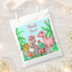 Obrigado adorável com o tema dos dinossauros, você favorece a bolsa com doce pastel rosa, laranja e dinos marrons cercados por verduras e flores tropicais exuberantes. Perfeito para segurar guloseimas, brinquedos pequenos ou guloseimas na festa de aniversário de dinossauros de uma menina. Uma maneira divertida e memorável de obrigado de convidados, ao mesmo tempo que se iguala ao tema do seu partido.