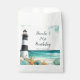 Belo saco de favores de festa de aniversário com um farol preto e branco náutico, estrelas-do-mar e conchas. Perfeito para uma festa de aniversário. As palavras podem ser alteradas para se adequarem aos seus próprios detalhes ou requisitos