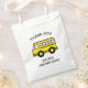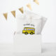 Saco de festa de aniversário de ônibus da escola amarela com texto personalizável.