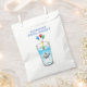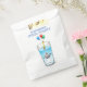 Piscina favorece bolsas com uma bela ilustração de uma baleia. A baleia está vestindo um chapéu de festas listradas vermelho e branco e começou a festa de aniversário que acontece em um copo d'água cheio.