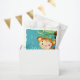 Um menino está chegando e esse macaco de cor d'água está anunciando. Verduras-da-selva com sotaques amarelos alegres sobre fundo azul-lacrimogêneo. Traga o aspecto macio da aquarela e a ilustração do querido para o papel de carta e presentes para o novo pequeno. Ele é um macaquinho precioso e vai capturar seu coração.