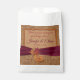 Estas baratos de casamento são uma forma excelente de manter o tema "Cair no Amor" forte. Estas bolsas de favorecimento de casamento têm um plano de fundo simulado de burlap com uma fita burguesa a correr pela parte inferior que tem um aglomerado de folhas de outono em vermelho, laranja, verde e ouro com uma pequena madeira laranja ouro a olhar para o coração e arco de fio laranja a descer. A parte superior da área de design do saco de favoritos tem uma área de texto de aparência de papel Kraft simulada sobre o padrão de burlap. Os nomes da noiva e noiva e a data do casamento são impressos em vinho burgundy e laranja queimado com letras laranja acima que dizem, "Obrigado por compartilhar nosso dia especial conosco!" através do topo. Se você precisar de itens adicionais correspondentes, envie seu pedido por e-mail para niteowlstudio@gmail.com ou use o recurso de bate-papo Zazzle para entrar em contato.