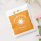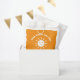 Um design de chá de fraldas laranja e branco honrando a mãe. O texto do design do sol é personalizável. Você pode alterar a fonte, a cor da fonte, o tamanho da fonte, o espaçamento da letra, o espaçamento da linha e reposicionar o texto usando a Ferramenta Design.