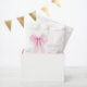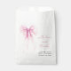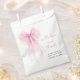 Obrigado de chá de menina bonita você favorece bolsas com uma grande arco cor-de-água rosa, "com amor e obrigados" em uma escrita rosa-chic, e o nome da futura mãe e da data de chá em simples inscrições modernas.