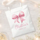 Essas bolsas favoritas apresentam um arco e um lugar para personalizar com um nome.