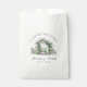 Este design de sacola de lembrança de casamento de jardim romântico apresenta um arco de casamento floral e uma fonte com uma tipografia cinza personalizável em um fundo branco.