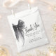 Compartilhe sua gratidão com aqueles elegantes e doces sacos de agradecimento temáticos 'Ela está amarrando o nó' para chá de noiva, apresentando um laço coquete preto e uma caligrafia moderna e estilosa.