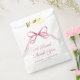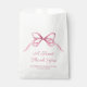 Festa bonita favorece bolsas para a sua chá de menina apresentando uma aquarela cor rosa de um arco de coquete, e "Um doce obrigado" e o nome da futura mãe em um roteiro elegante cor-de-rosa.