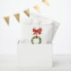 Festa de Natal verde mínima favorece as bolsas. Este partido de natal a favor das bolsas apresenta uma coroa de natal verde de madeira em boxe pendurada num arco vermelho. Todo texto pode ser personalizado com qualquer texto de sua escolha.