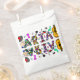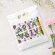 Festa de aniversário favorece bolsas com flores roxas, cor-de-rosa, vermelhas, azuis e lacerantes e símbolos musicais como guitarra e notas musicais.