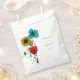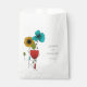 Encerre favoritos para festas de estilo com papel personalizado a favor de bolsas. Estas bolsas têm um aspecto limpo e moderno. Eles apresentam uma ilustração floral inspirada no design Art Nouveau em preto, azul-turquesa brilhante, vermelho, verde-claro e amarelo-ouro. Seu texto personalizado está em uma fonte sans serif limpa.