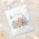 Véspera de Natal Traz o saco de favores. Esta design apresenta uma ilustração aquática do bebê Gingerpão, biscoitos Gingerpão, casa e árvore de Natal.