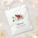 Parte impressa personalizada favorece o tratamento de bolsas com buquê floral de cor d'água boho em cores de queda rústicas. Personalize-o com seu nome e data de chá de fraldas ou altere o texto para adequá-lo a qualquer parte ou evento. Use as ferramentas de design para editar as fontes e as cores ou adicionar suas próprias fotos para criar uma de tipo chá de fraldas a favor do design.